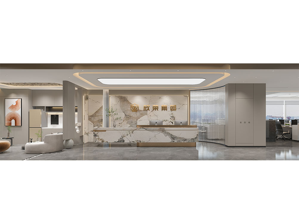 風(fēng)順集團(tuán)裝修效果以 “大氣沉穩(wěn) + 現(xiàn)代高效” 為核心,整體采用深灰、米白為主色調(diào)搭配金屬線條點(diǎn)綴,凸顯企業(yè)質(zhì)感。前臺(tái)接待區(qū)用大理石背景墻嵌入集團(tuán) LOGO,搭配簡(jiǎn)約大氣的接待臺(tái)與藝術(shù)擺件,營(yíng)造專業(yè)第一印象;濟(jì)南辦公室裝修為開(kāi)放辦公區(qū)采用模塊化工位設(shè)計(jì),配備獨(dú)立收納與人體工學(xué)座椅,墻面穿插集團(tuán)發(fā)展歷程掛畫與綠植,兼顧高效與舒適;會(huì)議室按規(guī)模配置高清會(huì)議系統(tǒng)與吸音材質(zhì),滿足不同商務(wù)需求;同時(shí)預(yù)留休閑茶水區(qū)與榮譽(yù)展示墻,既方便員工放松,也直觀傳遞企業(yè)實(shí)力,整體空間兼具品牌形象與實(shí)用功能。